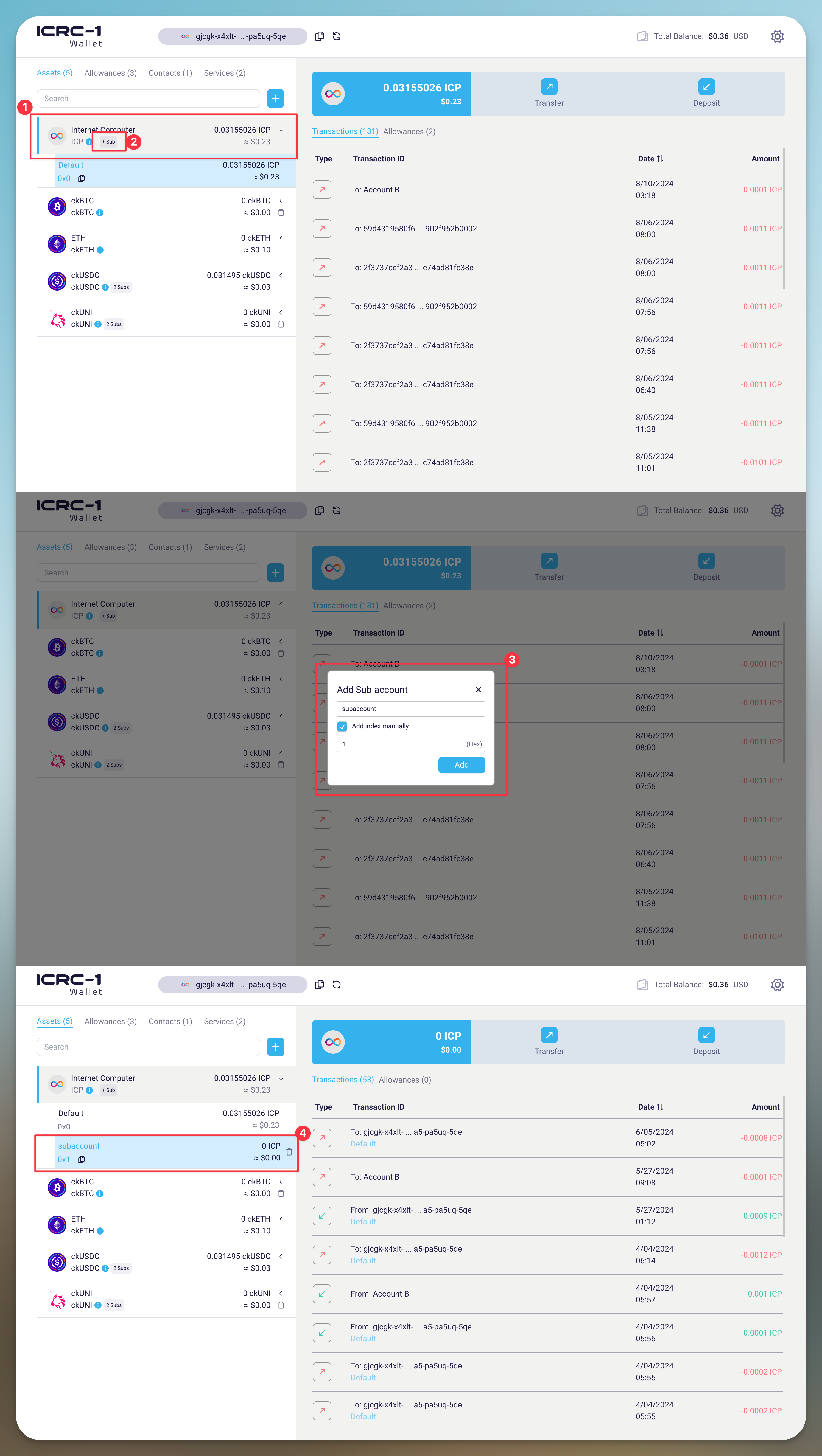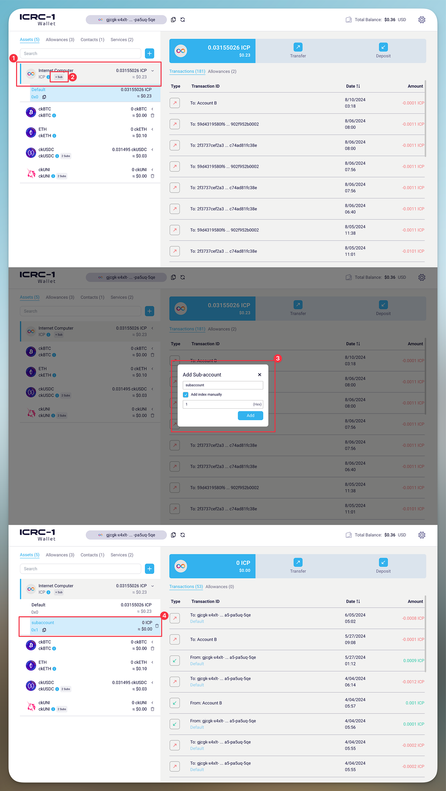 ICRC-1 Wallet Tutorial: Managing Subaccounts